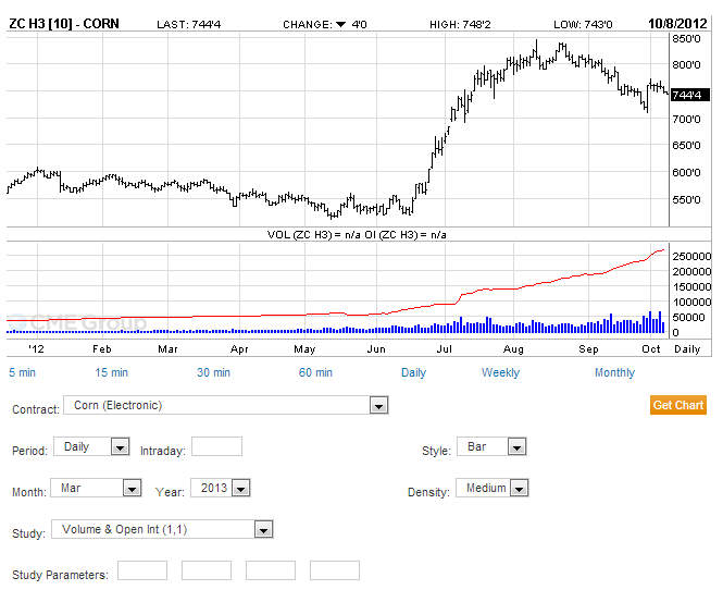 Geçtiğimiz hafta USDA (US Department of Agriculture) ın yayınladığı raporda Eylül ayı stokları açıklanmış idi. 1145 milyon kile olarak beklenen stoklar %12 düşüş ile 988 milyon kile olarak açıklanmış idi. Çiftçilerin, çiftliklerde tuttukları oranlarda da bir miktar gerileme gözlenen mısırdaki bu haber aynı gün fiyatlanmış idi. (USDA Raporu için bkz. http://usda01.library.cornell.edu/usda/current/GraiStoc/GraiStoc-09-28-2012.pdf)